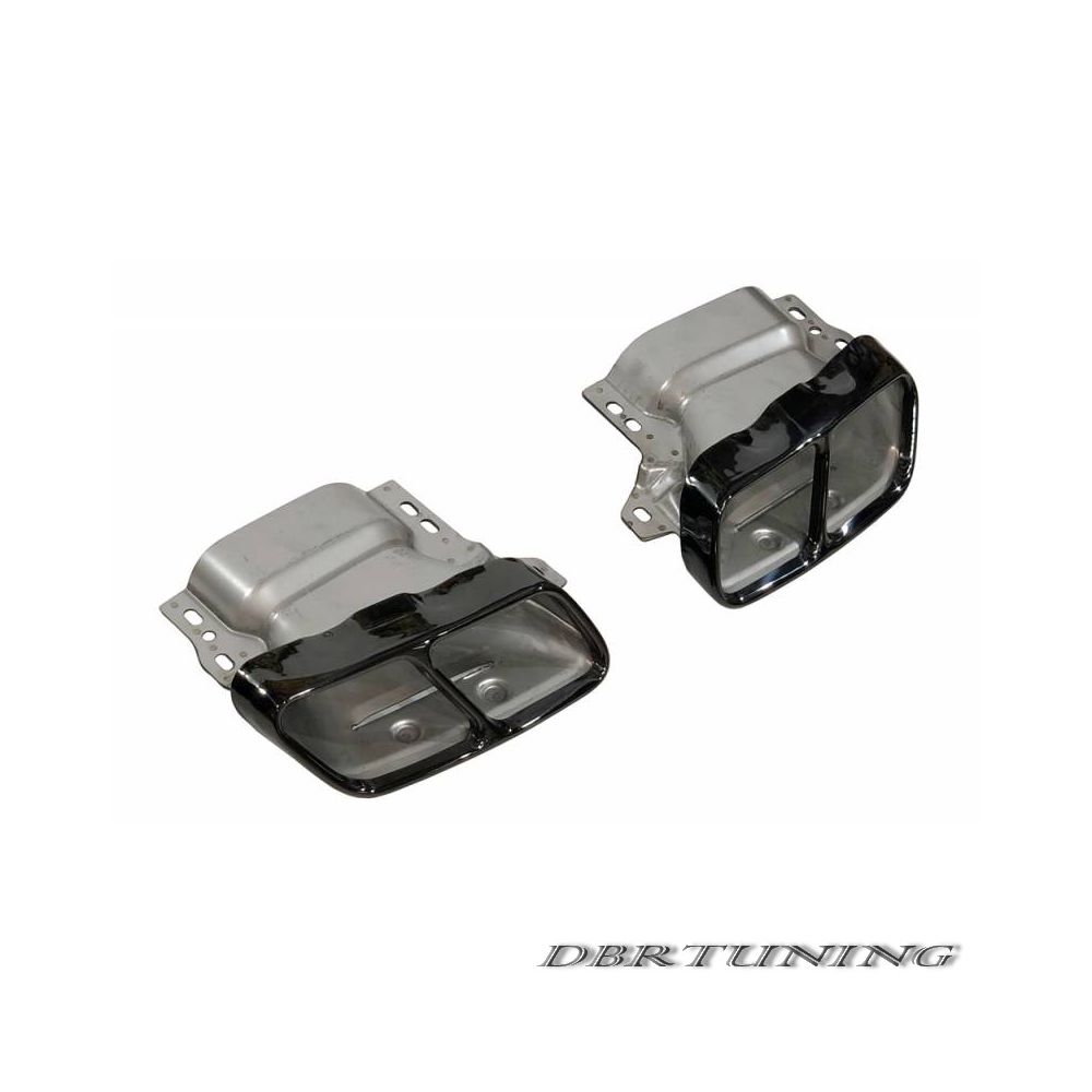 Pair of glossy black exhaust pipes complete with supports.