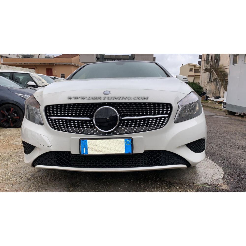 Calandra "DIAMANTE" in ABS Mercedes CLASSE A W176 look A45 "DIAMANTE" dal 2012 al 2015, colore nero/chromo. (NO RESTYLING)