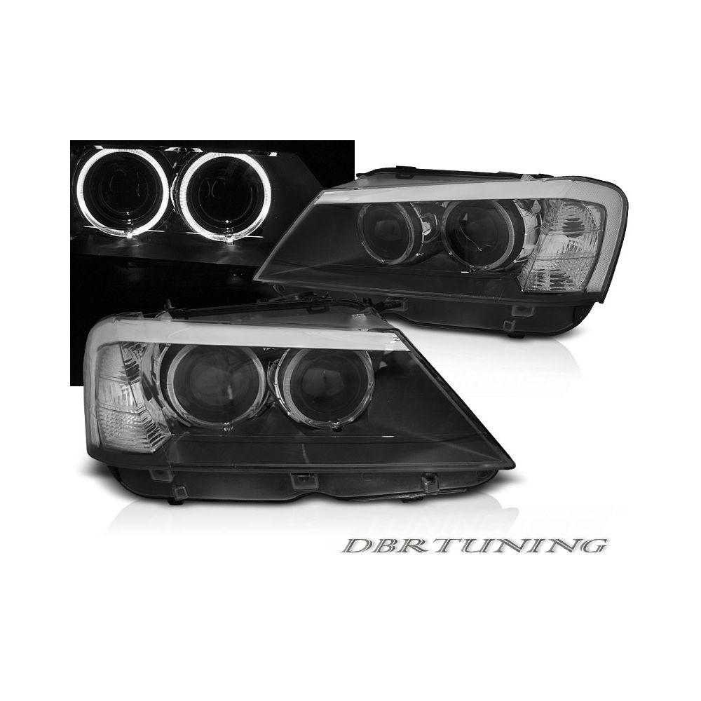 Par de faros ANGEL EYES LED BMW F25 desde 2010 asta 2014 en color negro.