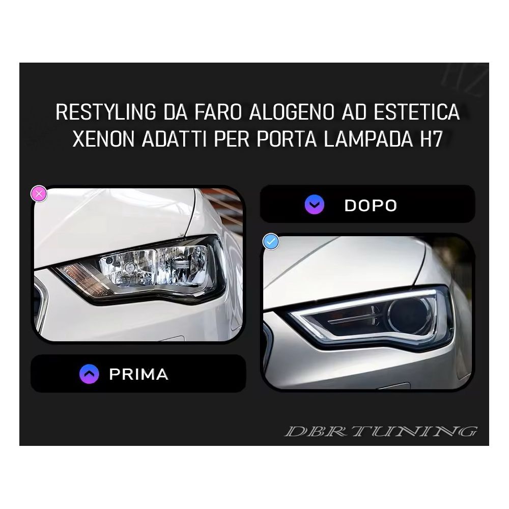 Questi fari Xenon look sono stati concepiti per equipaggiare tutte le vetture con fari normali alogeni H7.