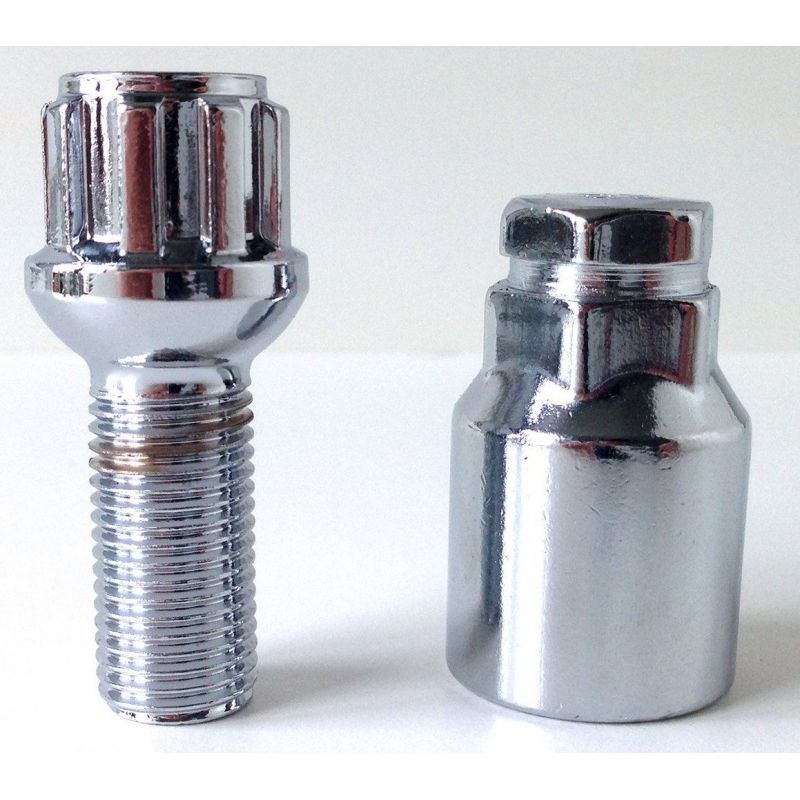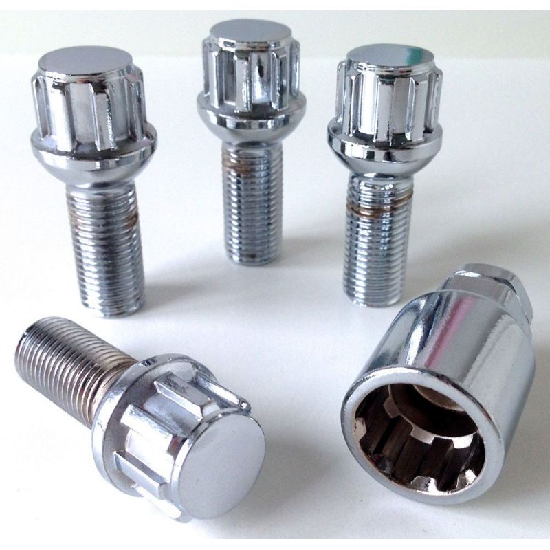 4 buloni (uno per ogni ruota) + chiave con finitura cromata.