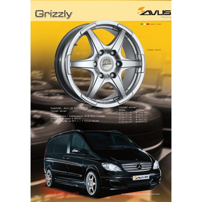 Cerchi in lega Avus GRIZZLY Hyper Silver da 16