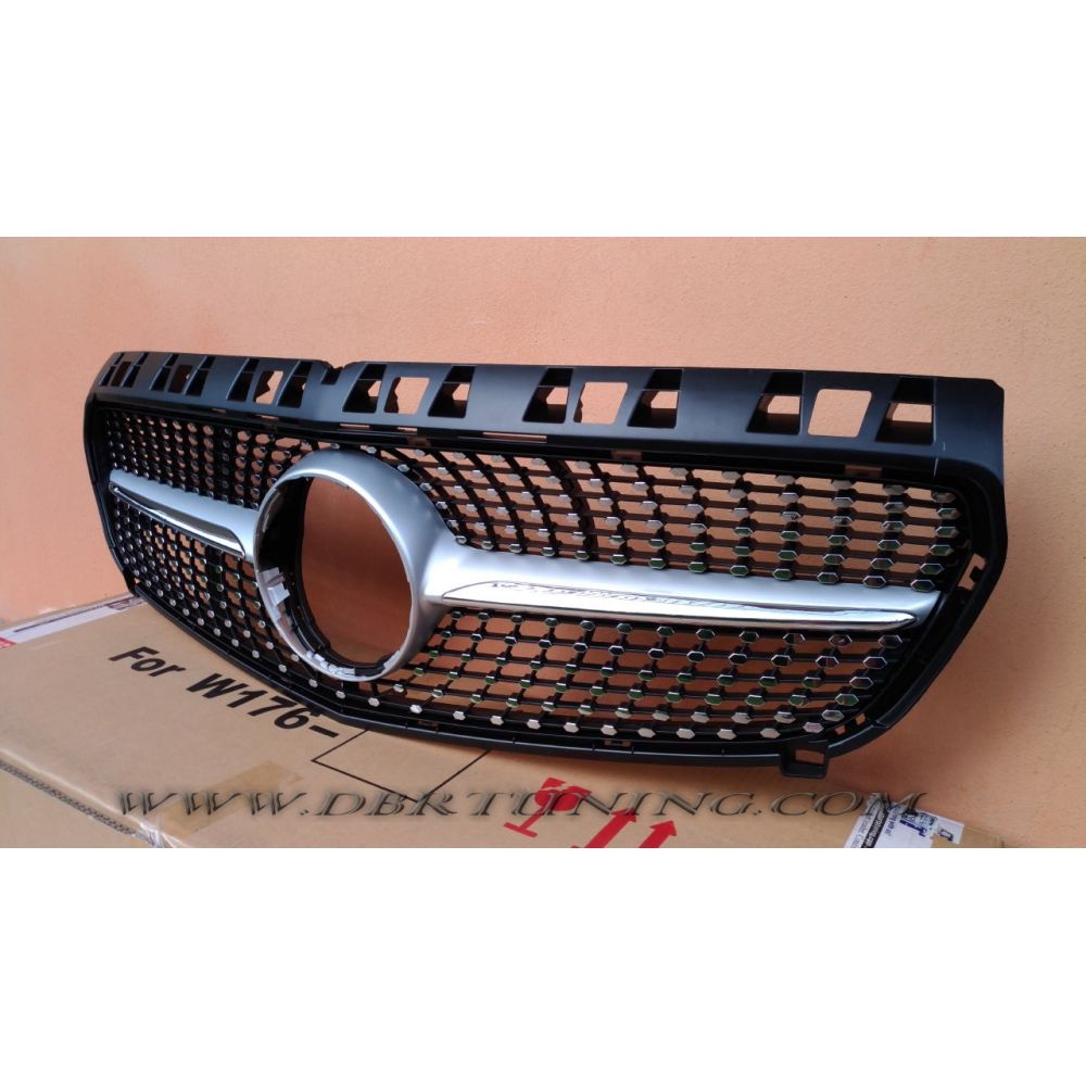 Calandra "DIAMANTE" in ABS Mercedes CLASSE A W176 look A45 "DIAMANTE" dal 2012 al 2015, colore nero/chromo. (NO RESTYLING)